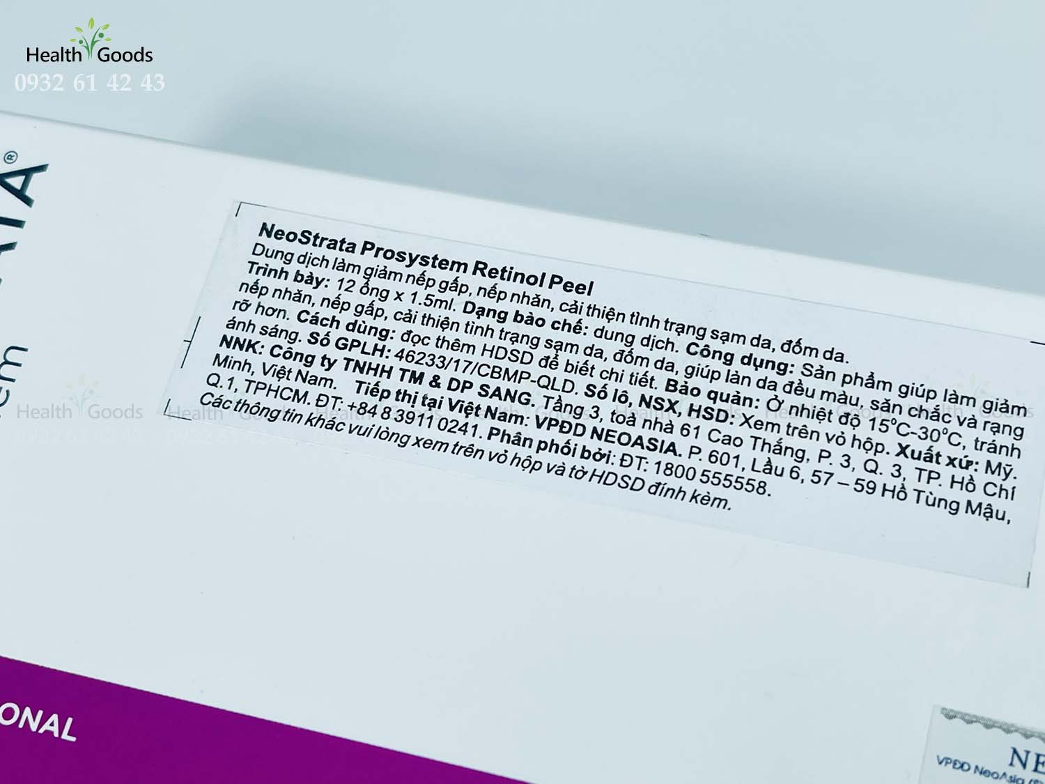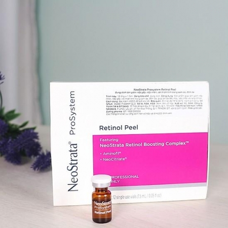NeoStrata ProSystem Retinol Peel chứa thành phần đột phá với Retinol 3% mang lại hiệu quả xóa mờ nếp nhăn và hỗ trợ để làn da bạn căng bóng, khỏe đẹp. Không chỉ vậy, sản phẩm còn công thức với Vitamin E 1% và Bisabolol 0.5% chăm sóc làn da sau peel một cách dịu nhẹ, giúp nhanh chóng lấy lại vẻ ngoài tươi tắn, rạng rỡ. Peel da sinh học với dòng mỹ phẩm nhà NeoStrata sẽ là chìa khóa để giải quyết mọi vấn đề về da như: mụn, nám, sạm, lỗ chân lông to, nếp nhăn… trong một giải pháp duy nhất.