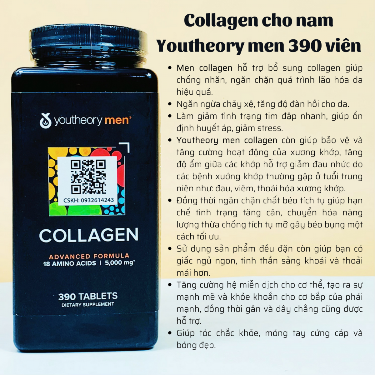Đối với sản phẩm Collagen Youtheory Men, với thành phần chính từ collagen 1 2 3 đã giúp cơ thể tăng cường sự miễn dịch, tạo sự linh hoạt các cơ khớp, các mô sụn được tái tạo. Tất nhiên, ngoài những công dụng riêng từ những thành phần khác thì công dụng chung của collagen cho nam là giúp da săn chắc, tăng độ đàn hồi cho da, xóa mờ các vết nám, tàn nhang, ngăn ngừa lão hóa da, giảm các vết nhăn trên da.